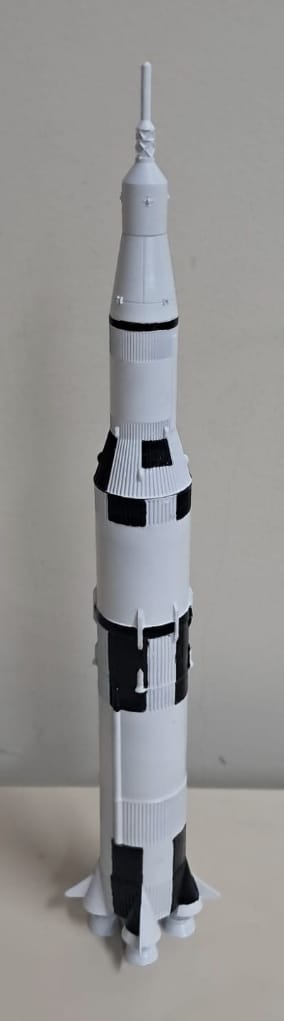 Foguete Saturno V (impressão 3D com filamento) | Modelo do foguete Saturno V, feito em impressora 3D com filamento. |
