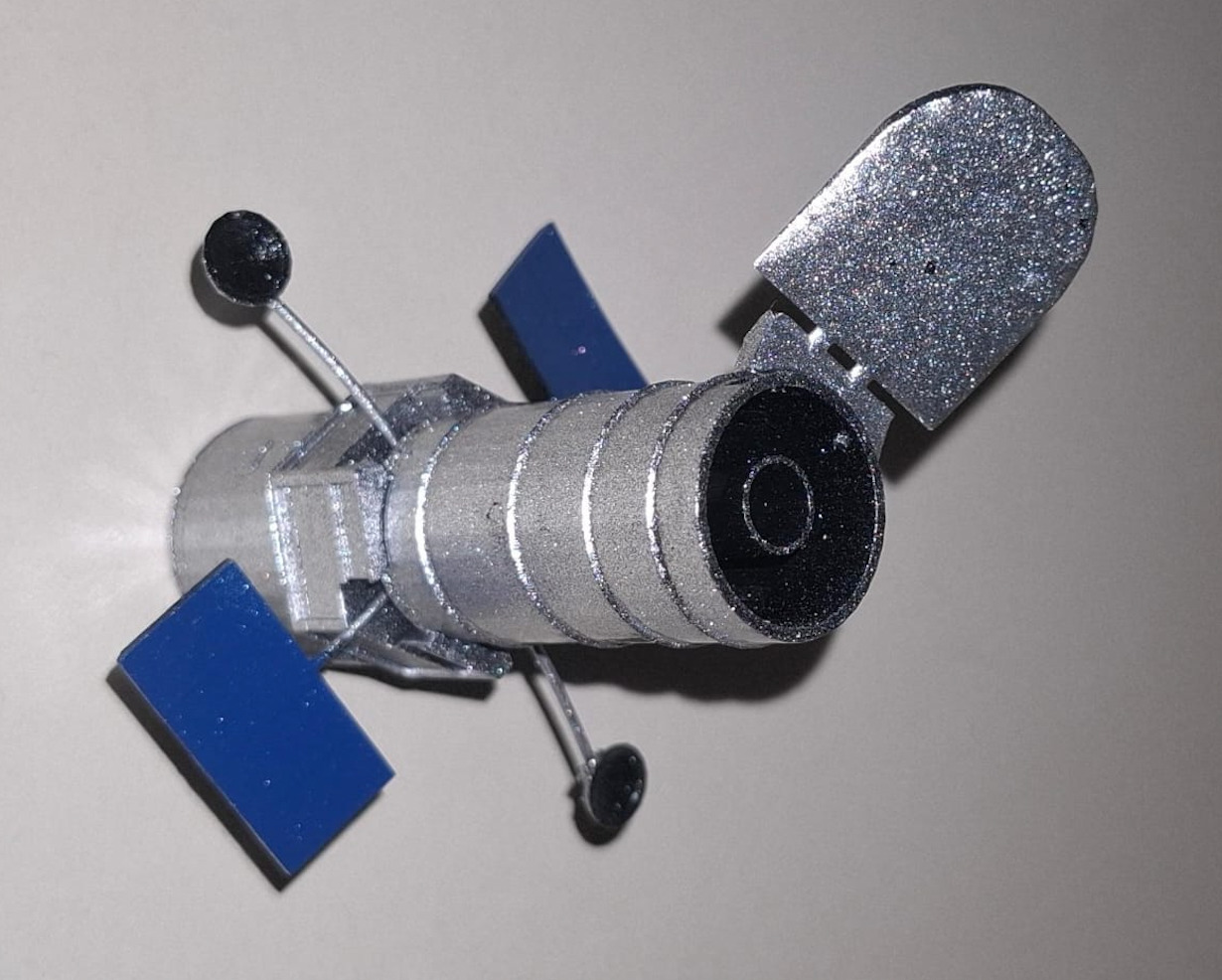 Telescópio Espacial Hubble (impressão 3D com filamento) | Representação do Telescópio Hubble, feito em impressora 3D com filamento. |