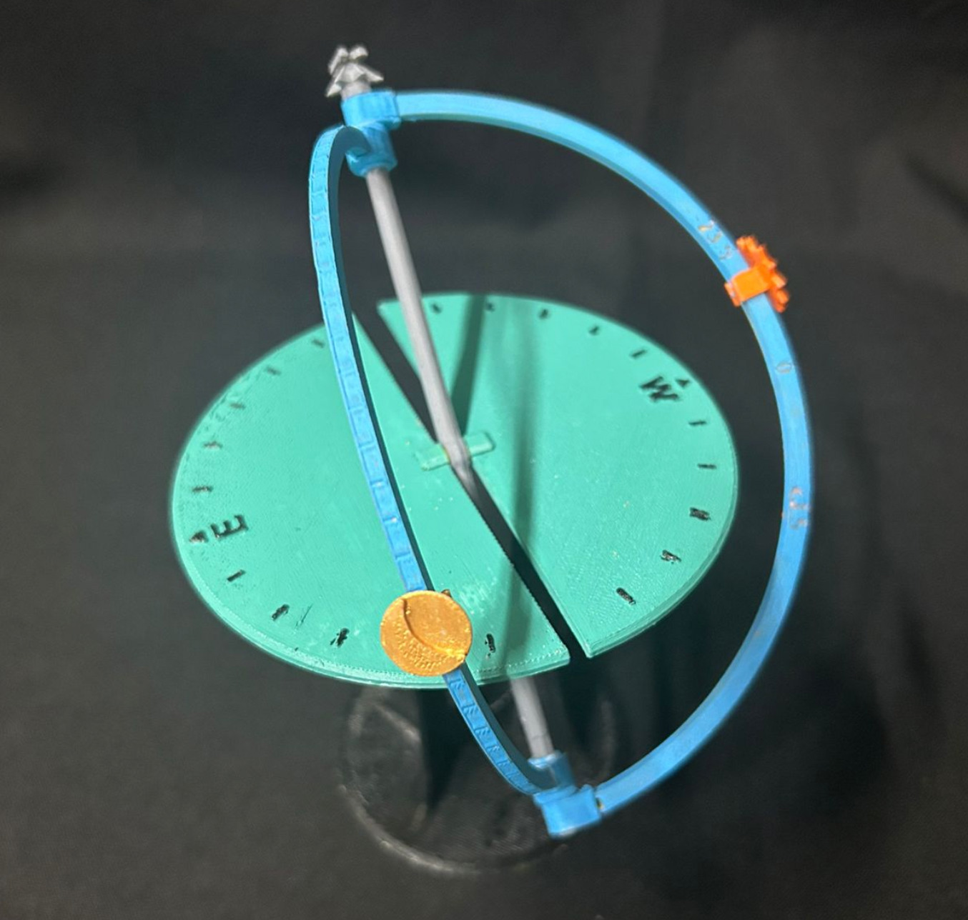 Representação do movimento aparente (visto da Terra) do Sol e da Lua, feito em impressora 3D com filamento.